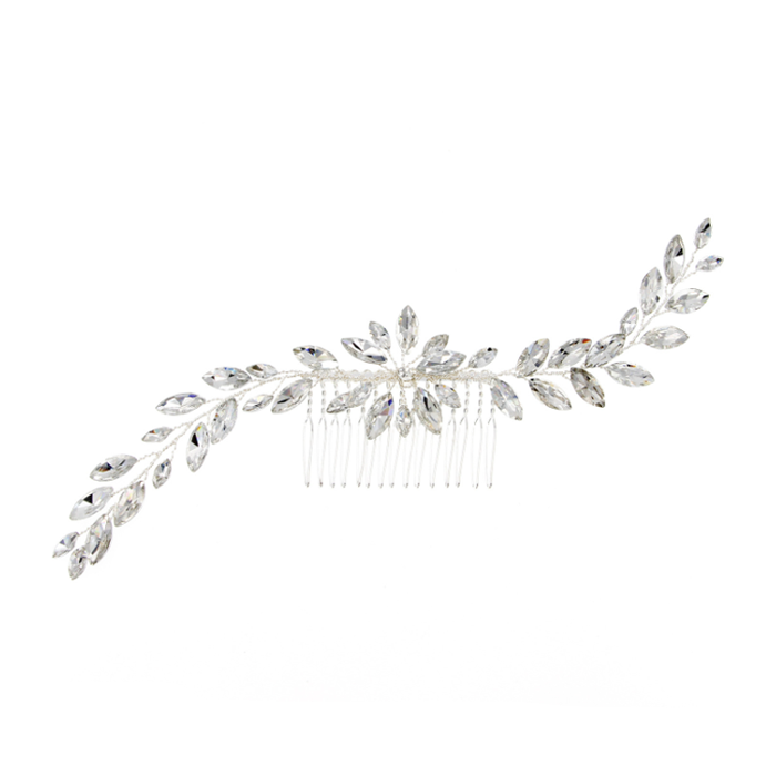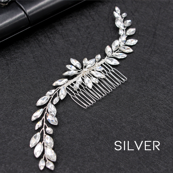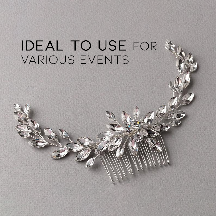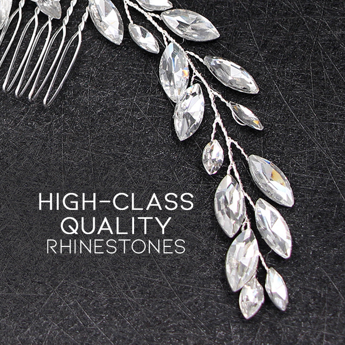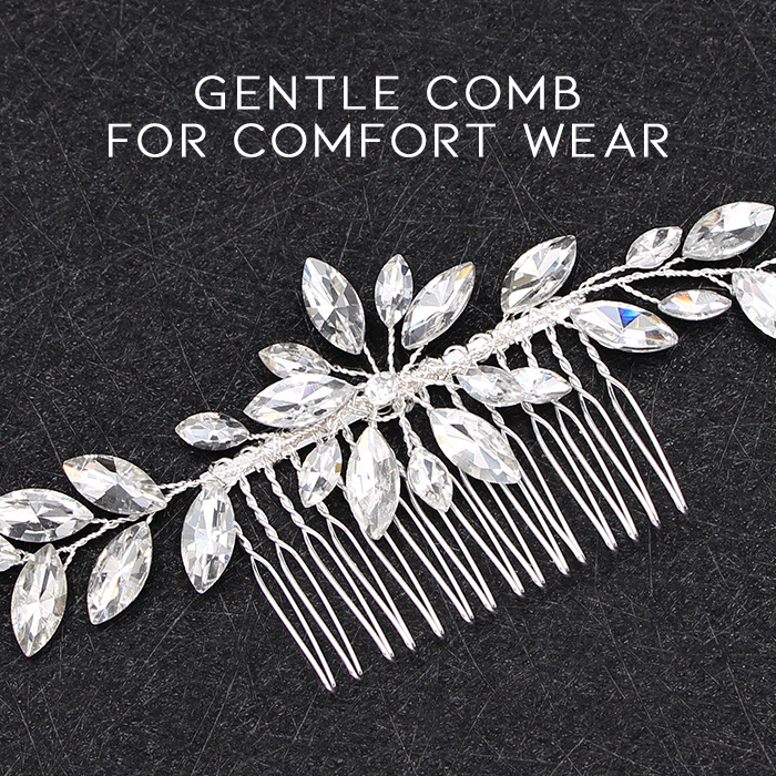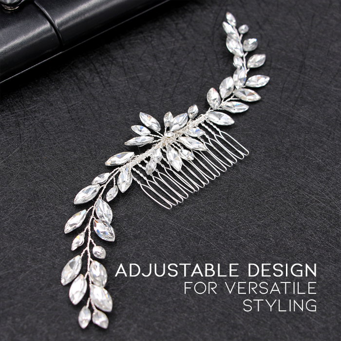 Der schlichte und elegante Kristall-Brauthaarkamm wird sorgfältig hergestellt, um Ihnen an Ihrem besonderen Tag den besten Look zu verleihen, den Sie verdienen. Sorgen Sie für Vielseitigkeit in Ihrem Stil, indem Sie die Perlen und Stellen der im Haarkamm eingebetteten Designs einfach anpassen, ohne befürchten zu müssen, dass er herunterfällt.